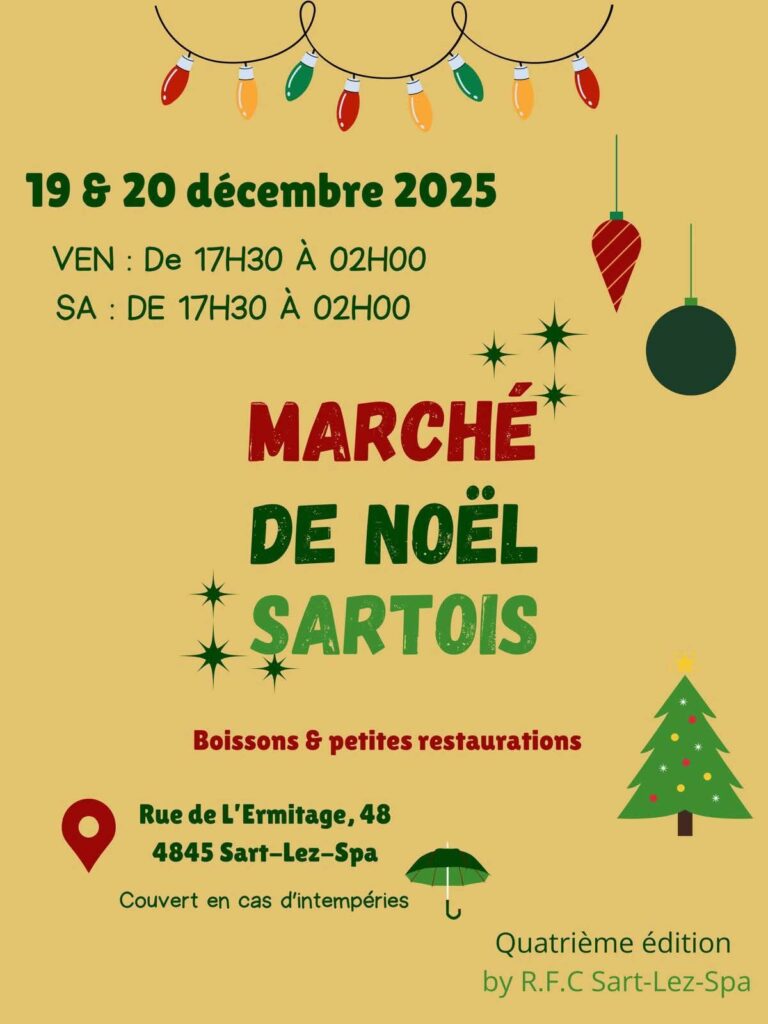Rejoignez-nous pour la 4e Édition du “Marché de Noël Sartois” by R.F.C. Sart-Lez-Spa